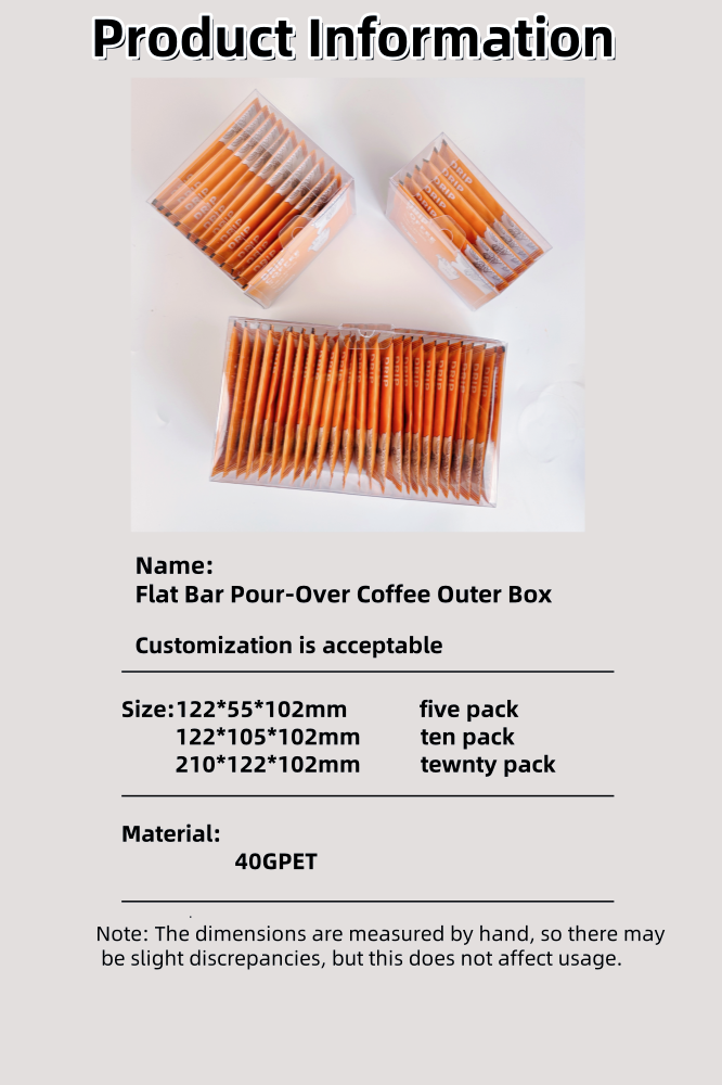 Za kupce prilagođavanje vanjskih vreća za kafu, odabir prozirne vanjske kutije omogućava vam da jasno vidite svoje prilagođene vanjske torbe za kavu.